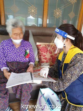 ▲ [사진제공 = 진주시]진주시 보건소는 5월 가정의 달을 맞아 지난 7일 요양시설 및 지역 내 치매 독거 어르신 가정을 방문해 안부를 확인하고 공경의 마음을 담아 감사의 마음을 전했다.