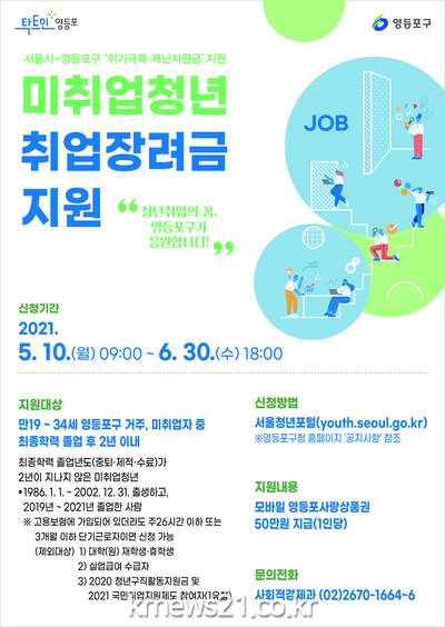 영등포구에 거주하는 만19세에서 34세 청년으로서, 1986~2002년 출생자 중 2019~2021년 졸업한 고용보험 미가입자가 지원 대상이다.