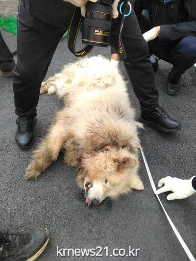 신고를 받고 출동한 구조대원들은 약 30분 만에 인근에서 서성거리던 개를 마취총으로 포획했다. 경찰이 전문가에게 의뢰해 확인해보니 풍산개와 사모예드의 잡종으로 파악됐다. 몸길이가 1.5m, 몸무게는 30㎏ 정도나 됐다.