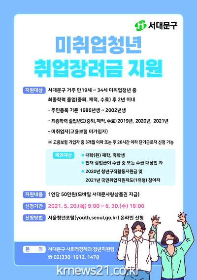 구는 선정된 미취업 청년에게 1인당 50만 원 상당의 모바일 서대문사랑상품권을 6월부터 순차 지급한다.