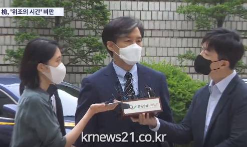 검찰은 조 전 장관 부부의 자녀 입시비리 혐의를 설명하면서 "'위조의 시간'에 (딸의) 허위 경력이 만들어졌다"고 강조했다. 이 발언은 조 전 장관이 최근 '조국의 시간'이란 책을 발간해 자신의 입장을 밝힌 것을 우회 비판한 것으로 해석된다.