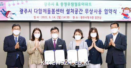 ▲ [사진제공 = 광주시]광주시는 송정우림필유아파트 입주자대표회의와 ‘다함께 돌봄센터 설치를 위한 무상임대 협약’을 체결했다고 15일 밝혔다.