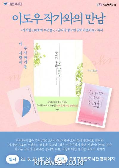 ▲ [사진=홍보포스터]도봉구(구청장 이동진) 쌍문채움도서관에서 오는 6월 26일 오후 2시, 「날씨가 좋으면 찾아가겠어요」의 저자 이도우 작가와의 만남을 준비했다.