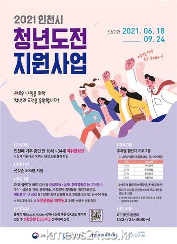 ▲ [사진=홍보포스터]인천광역시(시장 박남춘)는 구직단념 청년들의 사회활동 참여와 취업지원을 위한‘청년도전 지원 사업’참여자를 9월 24일까지 모집한다고 밝혔다.