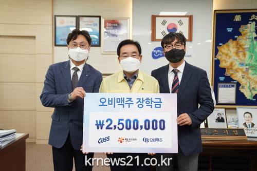 OB맥주(주) 청주지점(지점장 한정규)은 22일 진천군청을 관내 저소득 계층에게 도움이 되길 바란다며 성금 250만원을 전달했다.