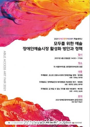 2021 장애인 아트페어 서울전시회는 6월 27일까지 서울라이티움 2관(서울숲길 갤러리아포레 G층)에서 계속되며, 7월 19일부터 23일까지 청주예술의전당 제1 소전시실에서 지방 전시회가 이어진다.