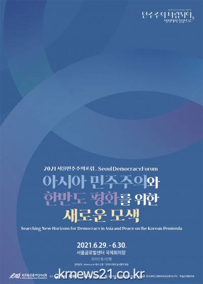 ▲ [사진=홍보포스터]민주화운동기념사업회(이사장 지선, 이하 사업회)는 6월 29~30일 이틀간 서울글로벌센터 국제회의장에서 ‘2021 서울민주주의포럼’을 개최한다고 28일 밝혔다.
