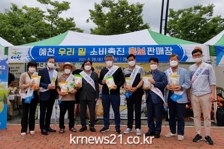 예천군은 지난 26일 서울올림픽공원 만남의 광장에서 국산 밀 소비 확대와 우수성 홍보를 위해 김학동 예천군수, 윤태진 재경군민회장, 출향인 10여명 등이 참여한 가운데 ‘예천 우리 밀 소비촉진 홍보 판매 행사’를 가졌다.