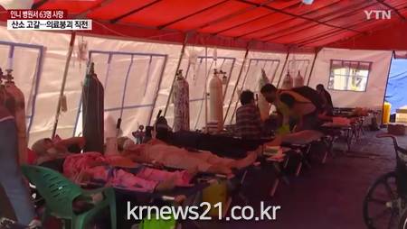 이어 "금요일 오후부터 위중한 환자가 몰려 산소 고갈 현상이 벌어졌다"며 "경찰이 지원해준 산소통으로 버티다 오늘 새벽 3시가 돼서야 의료용 산소 8t이 도착했다"고 밝혔다.
