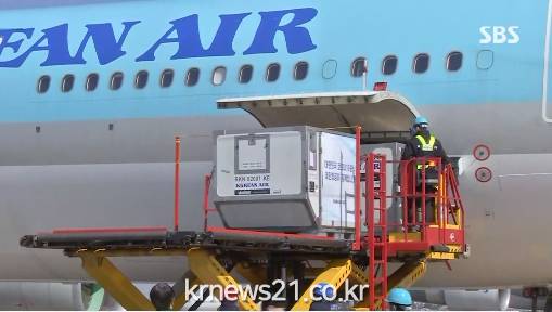 ▲ [사진출처 = SBS뉴스 캡처]정부가 이스라엘과 신종 코로나바이러스 감염증(코로나19) 백신 교환(스와프) 협약으로 받는 화이자 백신 70만회분이 7일 오전 8시 40분 인천공항에 도착했다. 이는 해외정부와 맺은 첫 백신 스와프 사례다.