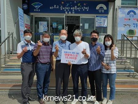 ▲ [사진제공 = 양평군]지난 13일, 양평군 대흥리 소재의 희성스포츠(대표 최희)는 양동면 주민들의 건강한 생활을 위해 양동면사무소에 마스크 10,000장을 쾌척했다.