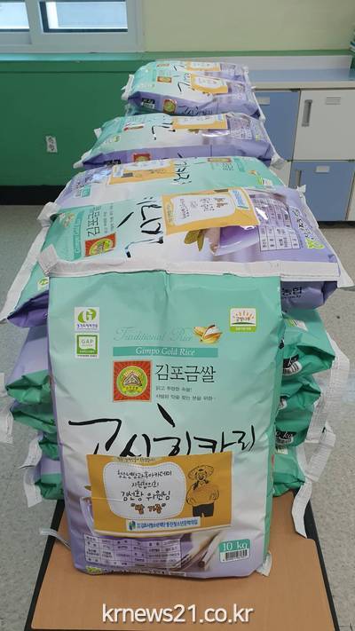 ▲ [사진제공 = 김포시](재)김포시청소년재단 통진청소년문화의집 청소년방과후아카데미는 지역사회 내 청소년의 건강한 성장을 위해 김포복지재단를 통하여 통진청소년방과후아카데미 지원협의회 김선황 위원님이 지정기탁 쌀 30포(10KG)를 지정기탁 받았다.