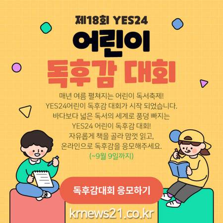 한편 ‘제18회 어린이 독후감 대회’ 관련 자세한 내용은 예스24 홈페이지 내 어린이 독후감 대회 블로그에서 확인할 수 있다.
