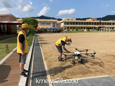 안전보안관(대표 김병준)들을 필두로 칠성면 일대 주요 기관(면사무소, 초등학교 등)을 순회하며 드론 방역을 실시하였고, 코로나19 예방수칙이 인쇄된 손소독제, 물티슈를 나눠주며 생활방역수칙을 홍보했다.