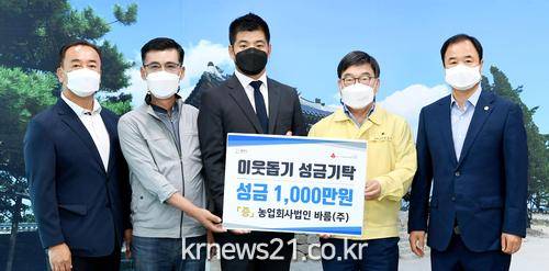 ▲ [사진제공 = 광주시]농업회사법인 바름㈜ 김동명 대표는 지난 19일 광주시청을 방문해 어려운 이웃을 위해 사용해 달라며 성금 1천만원을 기탁했다.