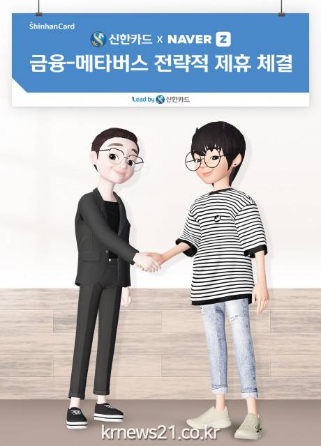▲ [이미지제공 = 신한카드]신한카드(사장 임영진)는 금융권 최초로 글로벌 메타버스 ‘제페토’를 운영하는 네이버제트(대표 김대욱)와 업무 협약식을 하고 Z세대 맞춤형 선불카드 출시 및 제페토 내 가상공간 구축에 나선다고 21일 밝혔다.