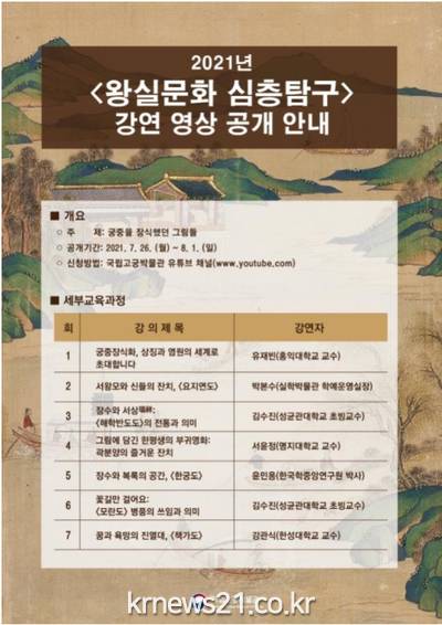 ▲ [사진=홍보포스터]문화재청 국립고궁박물관(관장 김동영)은 온라인 교육 프로그램인 ‘왕실문화 심층탐구’의 강연 영상 7편을 7월 26일부터 8월 1일까지 일주일 동안 국립고궁박물관 유튜브에서 공개한다.