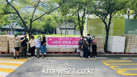 ▲ [사진제공 = 도봉구]도봉구(구청장 이동진)가 (사)희망을나누는사람들(회장 김정안)로부터 7월 20일 1억 원 상당의 생필품을 전달받았다고 밝혔다.