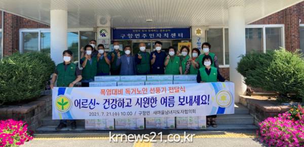 구항면 새마을남녀지도자협의회 (회장 고인재, 이순애)는 홀로 사는 어르신 등 취약계층 이웃들에게 사랑의 선풍기 50대를 기탁했다.