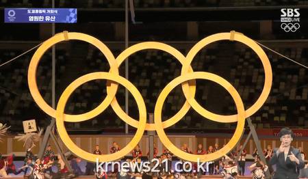 ▲ [사진출처 = SBS뉴스 캡처]신종 코로나바이러스 감염증(코로나19) 판데믹(세계적 대유행) 사태 이후 첫 스포츠 제전인 2020 도쿄하계올림픽이 23일 오후 8시 일본 도쿄 올림픽 스타디움(신국립경기장)에서 17일간 열전의 문을 열었다.