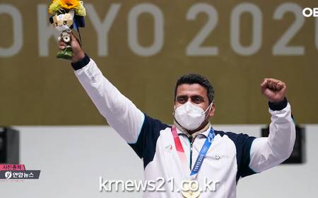 ▲ [사진출처 = OBS 캡처/연합뉴스]2020 도쿄올림픽 남자 10m 공기권총의 금메달리스트인 이란의 자바드 포루기(41)가 ‘테러리스트 논란’에 휩싸였다.
