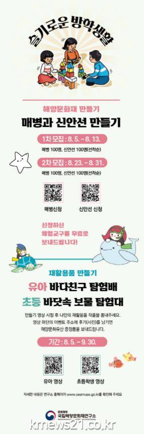 ▲ [사진=홍보포스터]문화재청 국립해양문화재연구소(소장 김연수)는 8월 5일부터 여름방학을 맞아 유아와 초등학생을 대상으로 한 온라인 체험행사를 운영한다.