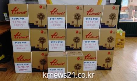 ▲ [사진제공 = 동두천시]동두천시 낙원교회(담임목사 공지태)는 3일 폭염으로 힘들어하는 관내 취약계층을 위해 동두천시에 선풍기 100대를 기부했다.