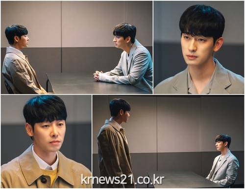 이와 관련 김동욱과 윤박이 경찰서 조사실에서 마주 보고 앉아 ‘감정선 대립’을 펼치는 ‘취조실 만남’이 그려진다. 극중 체이스(윤박)가 사면초가에 몰린 상태에서 주영도(김동욱)에게 대면을 요청한 장면. 주영도는 카리스마 넘치는 단호한 표정을 짓는 반면, 체이스는 절박한 상황에서도 오히려 냉기를 뿜어내는 날카로운 눈빛으로 주영도를 바라본다. 소리 없이 조용하게 불꽃이 튀는 가운데 두 사람이 서로에게 시선을 고정시키며 날 선 분위기를 드리우는 것. 더욱이 자리에서 일어난 주영도에게 체이스가 중요한 한마디를 던지면서 두 사람의 대면이 어떤 결과를 가져올지, 그날의 비밀에 대해 밝혀질지 귀추가 주목되고 있다.