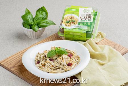 ‘한끼두부면’은 두부면 충진수만 따라 버린 후 동봉된 소스와 함께 비비면 돼 건강하고 맛있는 두부면 요리를 순식간에 완성할 수 있다. 두부면을 데우거나 볶아 먹어야 했던 번거로움은 줄이고 언제 어디서나 먹을 수 있게 편의성은 높였다. 또한 ‘생바질 파스타’, ‘새콤달콤 김치렐리쉬’ 2종의 트렌디한 메뉴로 출시해 두부면을 더욱 다양한 맛으로 접할 수 있도록 했다.