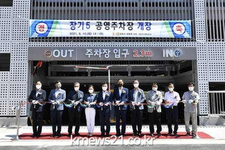 김포시는 기존 노외주차장에 국비 10억 원, 도비 10억 원, 시비 22억 원 총 42억 원을 투입해 104대의 차량을 주차할 수 있는 지상3층 규모의 자주식 공영주차장을 조성했다.