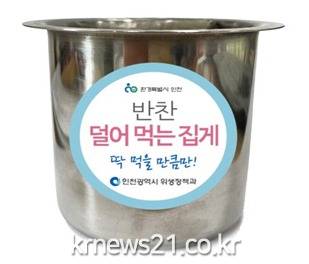 ▲ [이미지제공 = 인천시]인천광역시(시장 박남춘)는 8월 17일부터 우수음식점 등 덜어먹기 실천업소 715개소를 대상으로 “반찬 덜어먹는 집게” “딱 먹을 만큼만”의 문구가 새겨진 덜어먹기 집게 및 보관통 3,575개를 배부한다고 밝혔다.