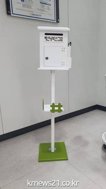 17일 군에 따르면 기존 홈페이지를 통해 예산낭비신고센터를 통해 예산낭비신고와 예산절감 제안을 접수하고 있었으나, 인터넷 사용이 익숙하지 않은 세대들의 활발한 참여를 유도하고 군민과 소통을 강화하기 위해 예산낭비신고 우체통을 설치했다.