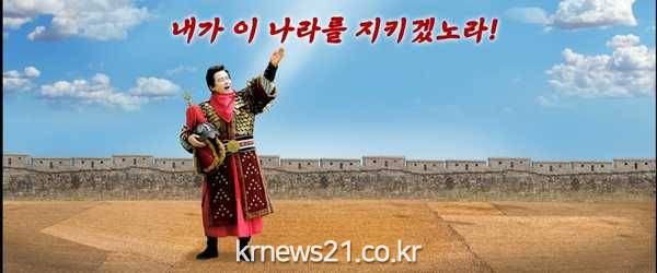 허 대표는 18일 오후 12시 행주산성 대첩문 앞에 갑옷을 입고 나타나 대선 출마 퍼포먼스를 벌였다.