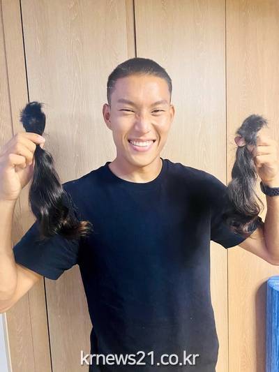 ▲ [사진제공 = 김포시]김포FC 소속 한의혁 선수가 소중히 길러온 머리카락을 소아암 환우를 위해 기증해 화제다.