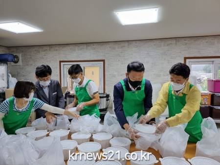 ▲ [사진제공 = 이천시]이천시자원봉사센터(센터장 민호기) 주관 경기동부인삼농협(조합장 윤여홍) 후원으로 이천시 대월면 달모람부녀봉사회(총회장 홍현숙)는 지난 24일 관내 독거노인 및 장애인 등 취약계층 40가구를 위한 삼계탕 먹고 기운 UP 행사를 실시했다고 밝혔다.