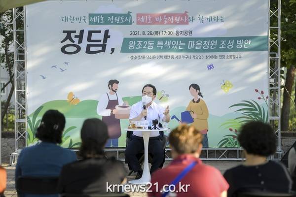 순천시(시장 허석)는 지난 26일 왕지공원에서 왕조2동 마을정원사와 함께 정원문화 확산과 마을정원 만들기 활성화 방안에 대해 토론하고 제안을 듣는 정겨운 담소의 시간을 가졌다.