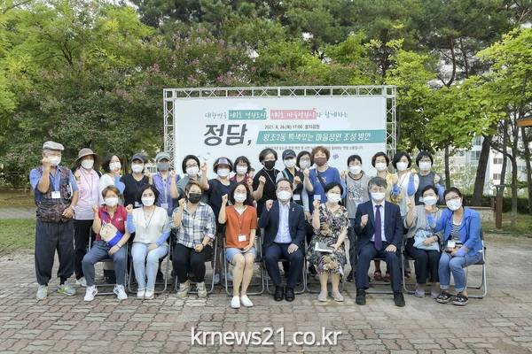 정겨운 담소에 참여한 마을정원사들은 사계절 꽃이 피는 왕조2동 조성을 위해 지봉로 가로변 ‘시인의 정원’조성, 가로수 아래 자투리 공간 등을 주민에게 한 평, 한 뼘 정원으로 분양, 600여 그루에 달하는 느티나무 가로수 전정, 가을 낙엽의 퇴비화를 통한 재활용 방안, 지봉로·백연길 가로화단 주변 풀베기, 특색있는 가로등 설치 등을 제안하였다.