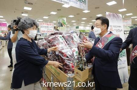 이차영 군수는 “대도시 고추판매장을 통해 괴산청결고추의 우수성을 대도시 시민에게 널리 알리는 계기가 되길 바란다”며 “코로나19로 힘든 시기에 지속적으로 판로를 확대해 농가 소득 증대에 최선을 다하겠다”고 말했다.