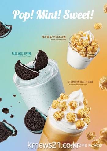 △카라멜 팝 커피 프라페 △카라멜 팝 아이스크림은 기존 인기 제품 ‘카라멜 커피 프라페’와 ‘소프트아이스크림’에 캐러멜 시럽과 팝콘 토핑을 추가해 맛과 식감을 업그레이드한 제품이다. MZ세대 사이에서 인기가 높은 중독적인 ‘단짠(단맛+짠맛)’ 조합에 고소함이 더해진 맛과 풍성한 비주얼이 특징이다.