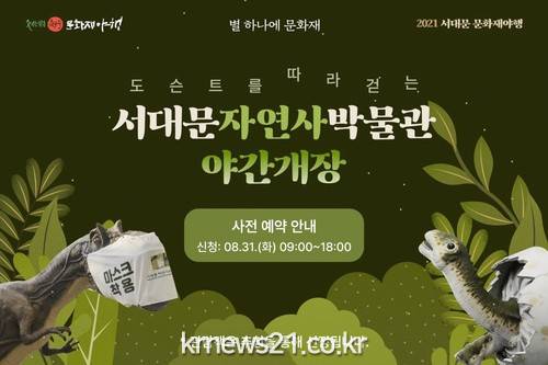 참여 희망자는 8월 31일 오전 9시부터 오후 6시까지 ‘서대문 문화재 야행’ 공식 홈페이지(www.sdmnightroad.com, 프로그램→야경→서대문자연사박물관 야간 개장)에서 신청할 수 있다.