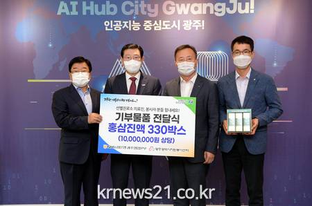 ▲ [사진제공 = 광주광역시]NH농협은행 광주영업본부가 코로나19 선별진료소에서 헌신하고 있는 의료진과 봉사자 등을 격려하기 위해 홍삼진액 330상자를 광주시자원봉사센터에 기부했다.