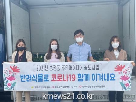 이번 반려식물 기탁은 지난해에 이어 두 번째로 지역자활센터에서 진행 중인 2021년 송정동 주민아이디어 공모사업인 ‘오늘보다 내일이 조화롭게’에 참여 중인 주민들이 원예치료 프로그램을 통해 직접 만들었으며 무한돌봄 행복나눔센터에서 수행하는 사업 대상자들의 우울감 및 스트레스 완화에 도움이 되고자 기탁했다.