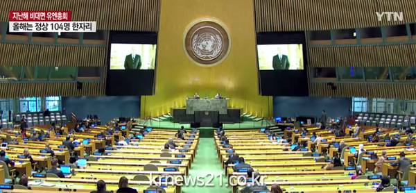 지난해 유엔총회는 코로나19 우려 때문에 화상으로 열렸지만, 올해는 화상과 대면을 병행한 '하이브리드' 형태로 개최될 예정이다.