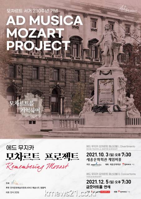 2021년 10월 3일 세종문화회관 체임버홀, 그리고 12월 5일 금호아트홀 연세에서 이루어지는 두 번의 공연에서 에드 무지카는 모차르트의 피아노 콰르텟 등 소규모 실내악 작품과 더불어 모차르트의 디베르티멘토와 신포니아 콘체르탄테 등 대규모 오케스트라 작품을 아우르는 특별한 무대를 선보일 예정이다.