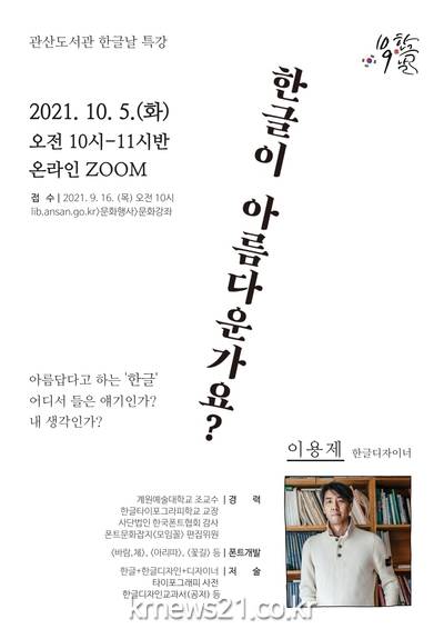 시 관계자는 “이번 강연을 통해 한글의 우수성과 아름다움에 대해 생각해보고, 한글날의 의미를 되새기는 시간이 되길 바란다”고 말했다.