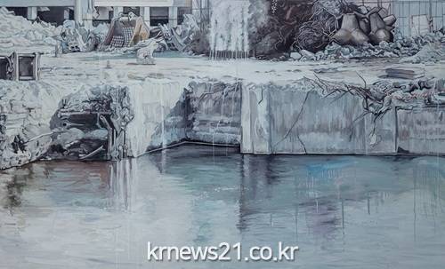 장동욱 작가는 ‘냄새를 잃어버린 지점’(2020), ‘교차지점’(2020), ‘공터’(2019) , ‘ SUN PM230’(2018), ‘ A sleeping bird’(2018) 등 총 7점의 회화작을 전시한다. 작가는 우연히 마주친 사물, 도시 속에서 잊혀져가는 공간을 유년기에 경험했던 사라지는 것들에 대한 불안한 기억들과 교차시킨다. 작가의 기억 속 환영과 실재가 얽혀진 아련함이 캔버스 위에 떠오른다.