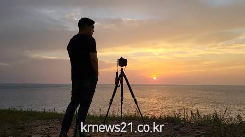 이번 전시에는 일몰 직후 나타나는 태양의 변화를 시간대별로 촬영한 총 10점의 작품을 선보인다.