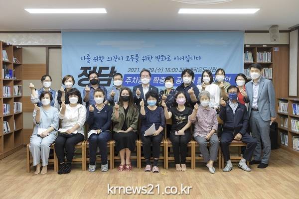 순천시(시장 허석)는 지난 9월 29일 파랑새 작은 도서관에서 연향호반 1·2차아파트 주민 50여 명과 ‘주차공간 확충 및 공동체 활성화 방안’을 주제로 정겨운 담소의 시간을 가졌다.