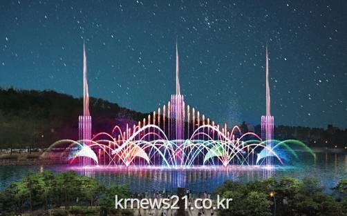 가로 75m, 높이 60m로 뿜어내는 분수와 LED조명으로 연출되는 분수시설, 레이저쇼, 관람시설을 갖추어 조성된 음악분수는, 지난 4월에 착공하여 9월부터는 시범운영을 시작하였고 오는 10월 8일 정식운영을 앞두고 있다.