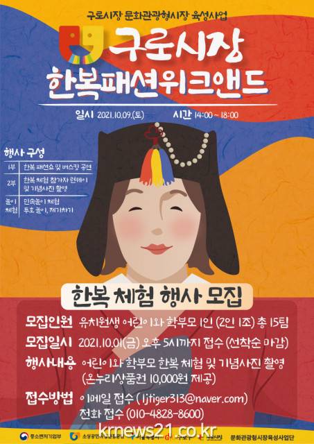 또한 고객과 함께하는 체험 프로그램인 어린이와 학부모 한복 체험 및 기념사진 촬영도 있어 한류로 관심이 높아지고 있는 한복을 더욱 알리고 구로시장의 패션거리의 매출 향상을 기대하고 있다.